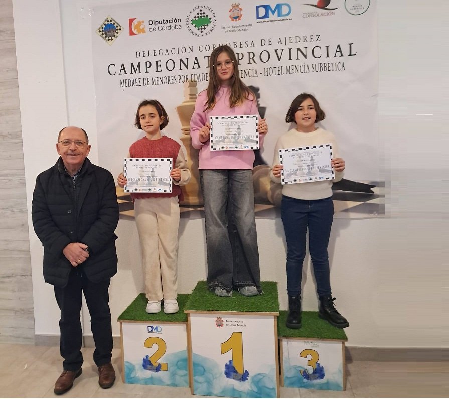 También le ha acompañado el éxito al deporte baenense en los Campeonatos Provinciales de menores de ajedrez por edades, celebrado en Doña Mencía, donde el Club Ajedrez ‘Ruy López’ de Baena ha participado con 11 ajedrecistas de todas las edades que han brillado en el podium con tres medallas, una de oro y dos de bronce, en categoría femenina y otros puestos destacados, rozando podium, en el cuadro masculino.